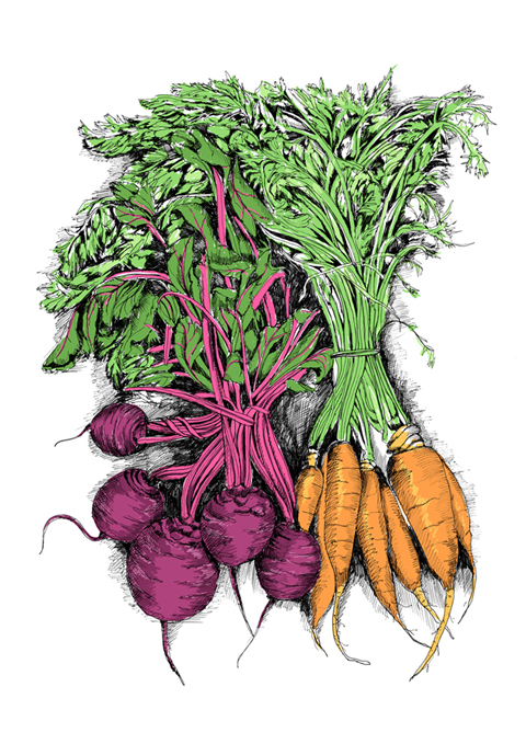 May van Millingen is an illustrator whose work spans the world’s of print, books, contemporary culture, textiles and design. May’s process combines mark making and strong graphic lines, with a bold use of colour, resulting in a unique style. Taking inspiration from daily life, the natural world, and the beauty of food, this solo exhibition at The Modern Pantry is a series of drawings that explores the relationship between food and art.