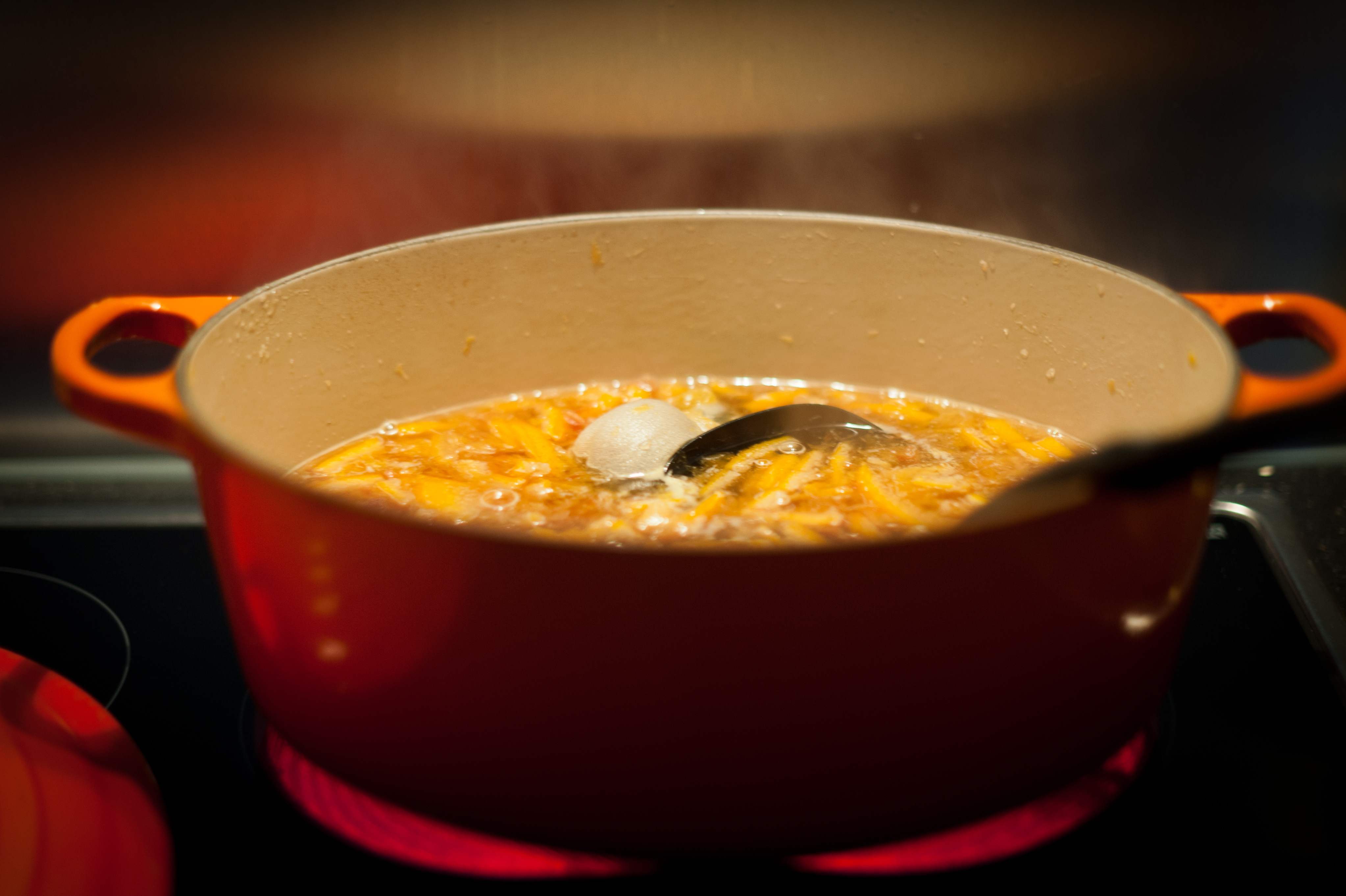 Wash the blood oranges. Place them in a capacious heavy bottomed pan and cover them with water. Boil the whole fruit until it is soft and tender. You may need to top up the liquid. This usually takes between 2 – 3 hours.