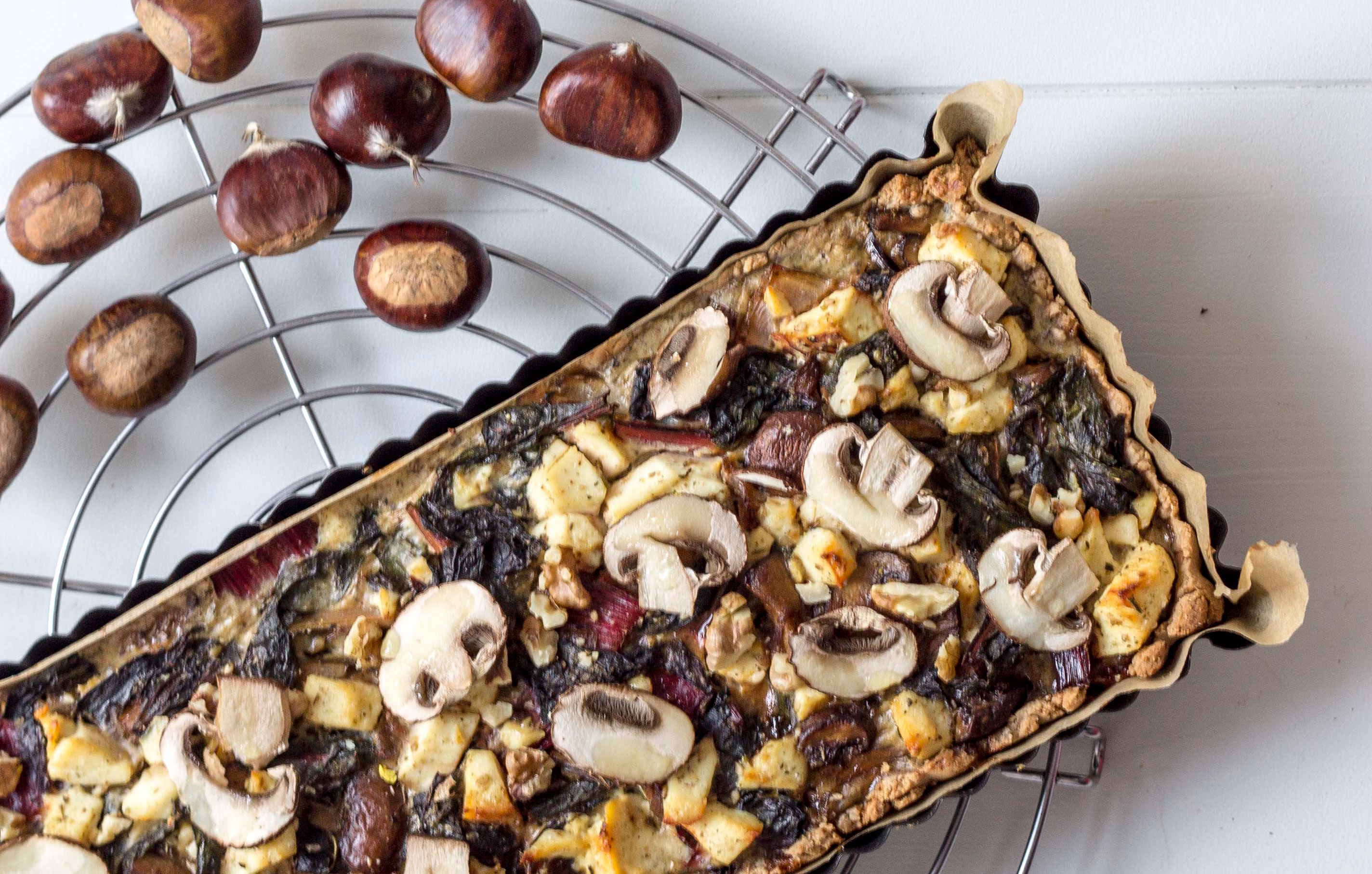 Combine the flour with salt, coconut oil and ice-cold water until dough forms. Form a ball, wrap it in plastic and chill for a minimum of 30 minutes. Preheat oven to 200°C. Roll out the dough and press it into the buttered tart pan. Prick bottom with a fork.