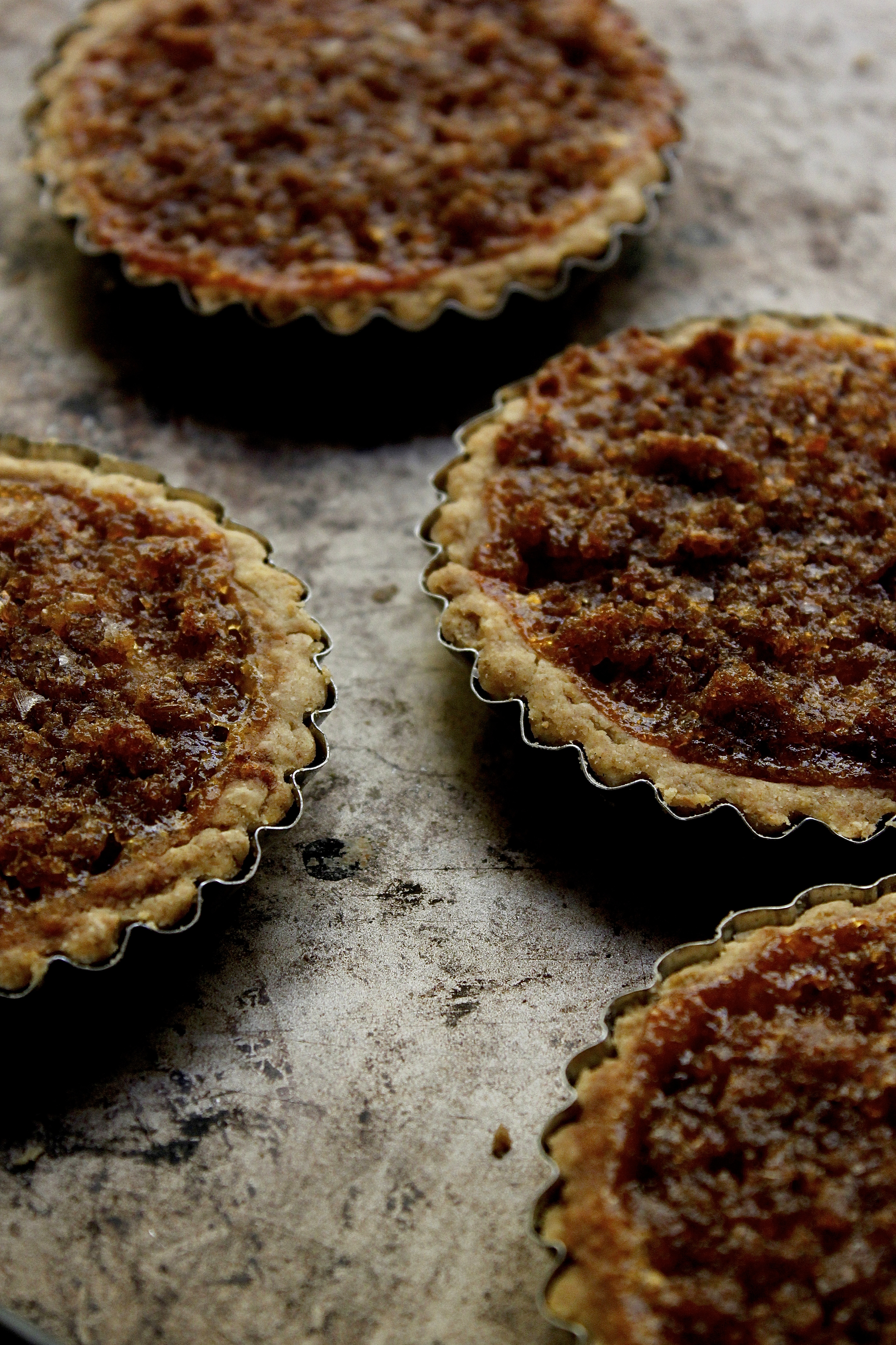 Note: these individual treacle tartlets are made with rye flour and are filled with rye breadcrumbs. Rye always makes me think of Scandinavia so the pastry includes a generous pinch of freshly ground cardamom as well. And while I am particularly fond of this rye bread version of the filling, there is nothing that says you could not use a slice or two of your favourite country loaf for the filling. The important thing is to pair the treacle tarts with something that will cut through the filling’s almost tooth-aching sweetness. A lemon scented cream works well, only lightly sweetened, if at all. A scoop of lemon curd or greek yoghurt ice cream would work too.