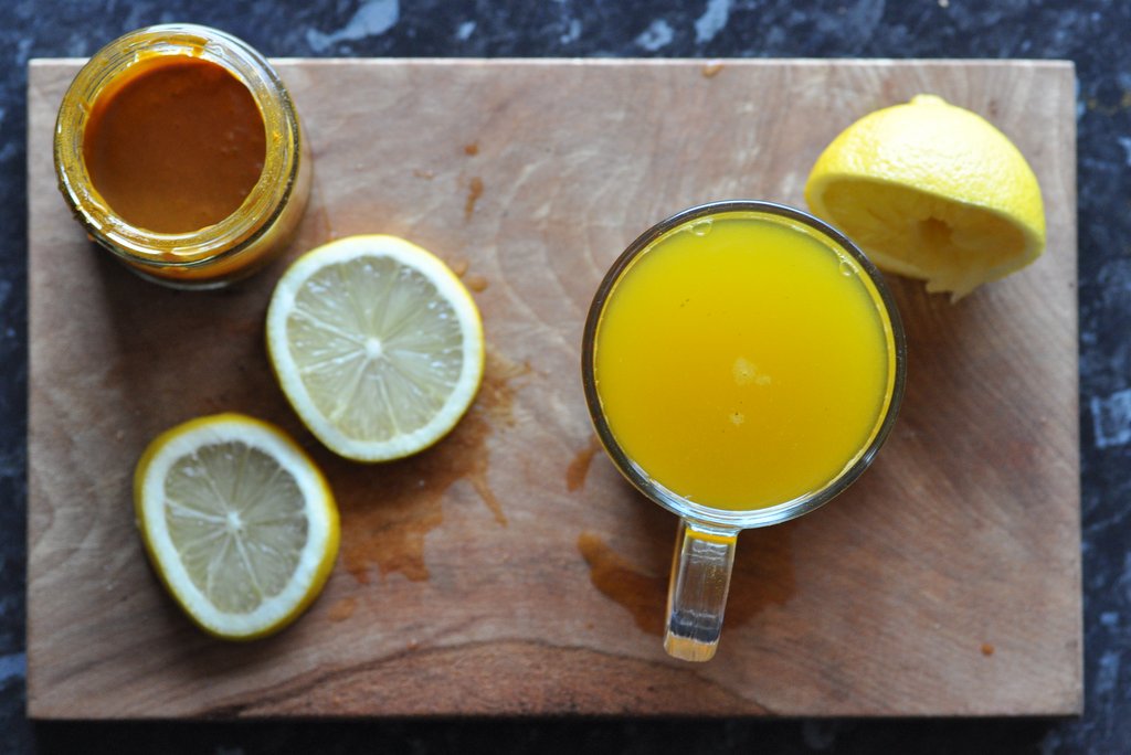 Squeeze some lemon juice into your warm golden liquid.